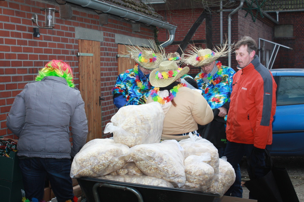In 5 lustigen Sitzungen wurde im Vereinslokal geschneidert, genäht und geklebt. In Heimarbeit wurde von Andrea Neuer und Olaf Neumann ein Bollerwagen künstlerisch hochwertig gestaltet. Dank der Sponsoren Lothar Otto, Hermann Asche, Hartmut Caesar, Clemens Schocke und Ralf Neuer, konnten wir großzügig Wurfmaterial einkaufen. Nicht nur das schneidern der Köstüme, auch der Umzug war ein Riesenspaß. Wir sind auf jeden Fall im nächsten Jahr wieder dabei. Vielleicht auch mit noch mehr Teilnehmern. Anfragen bzw. Anmeldungen werden von allen Vorstandsmitgliedern gerne entgegengenommen. Oder einfach eine email an : emmerbach-schuetzen @email.de