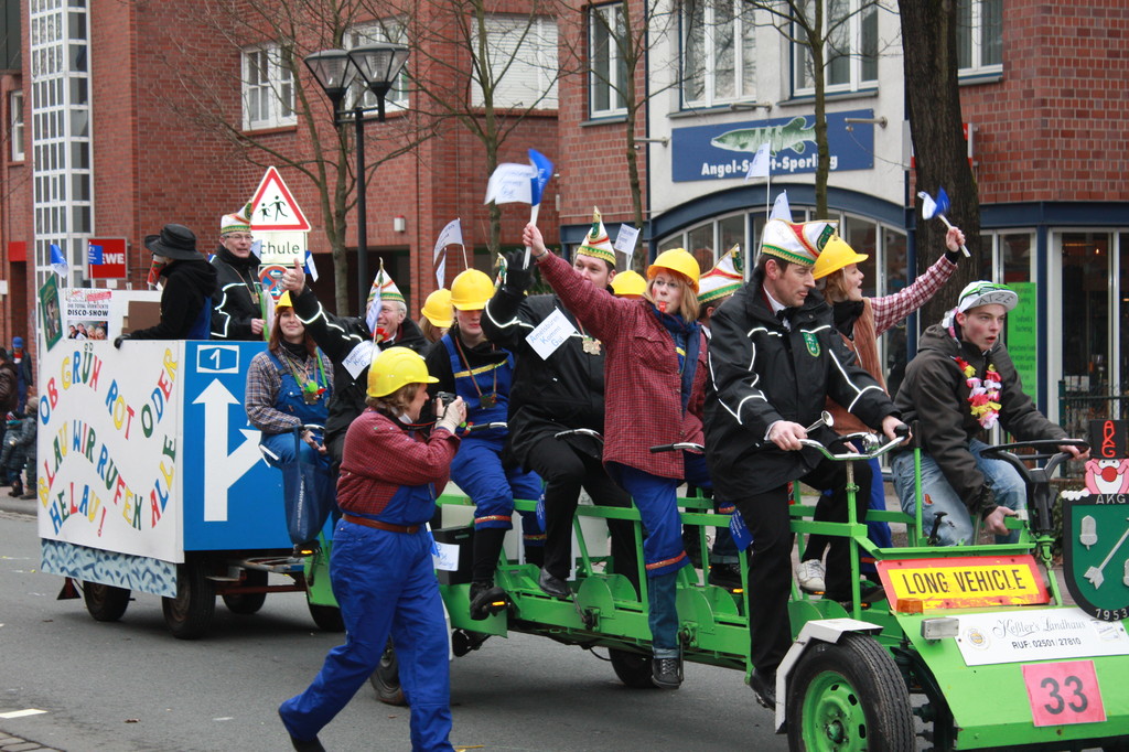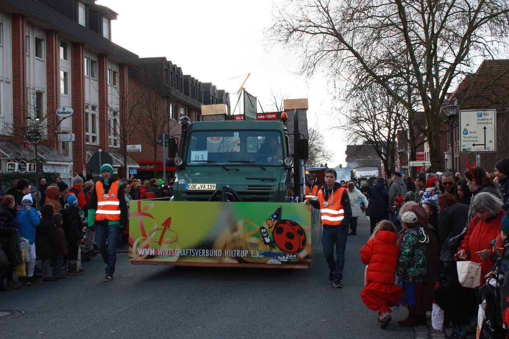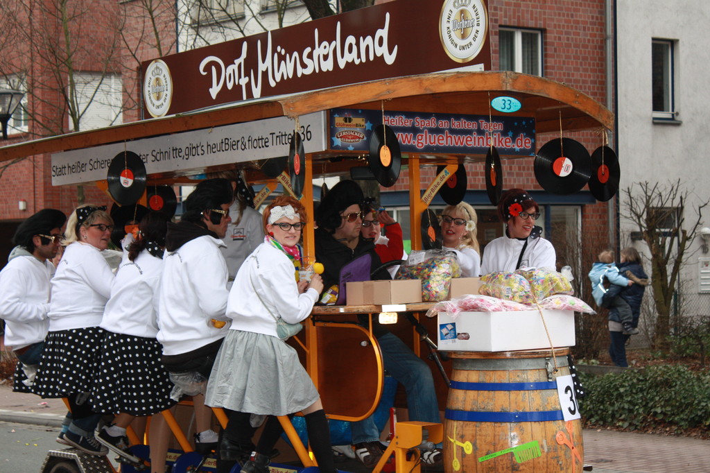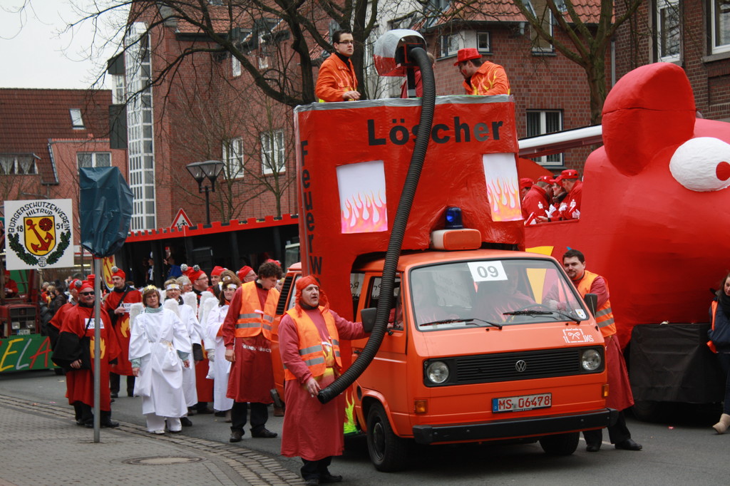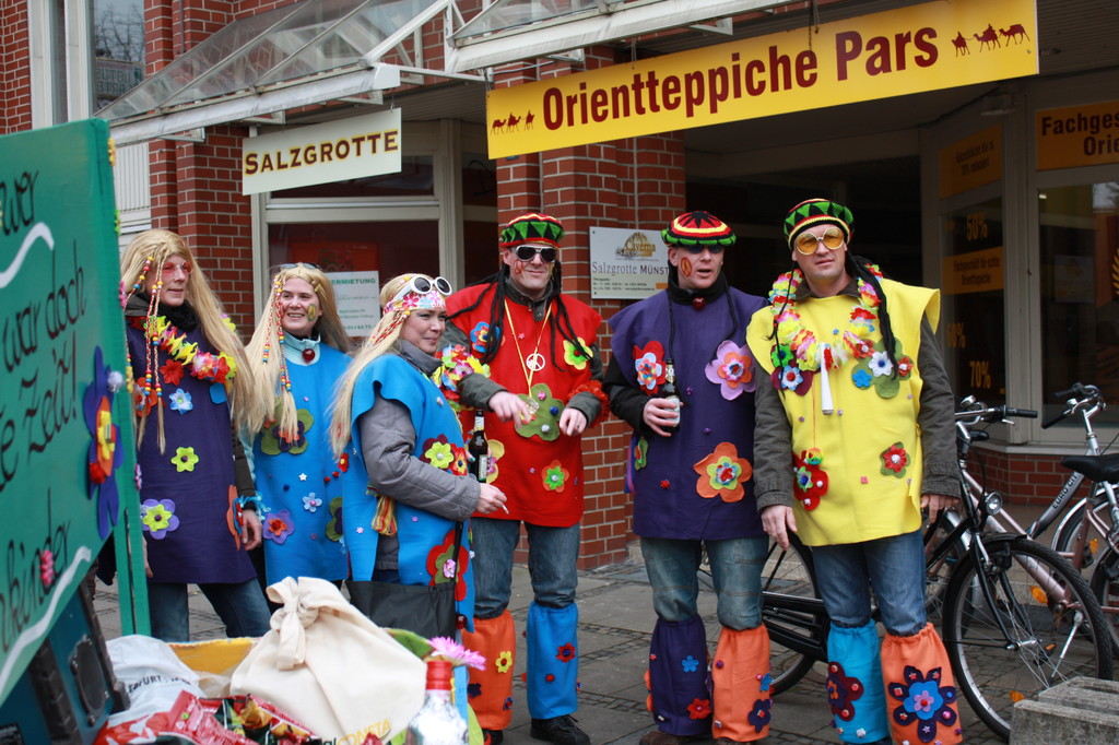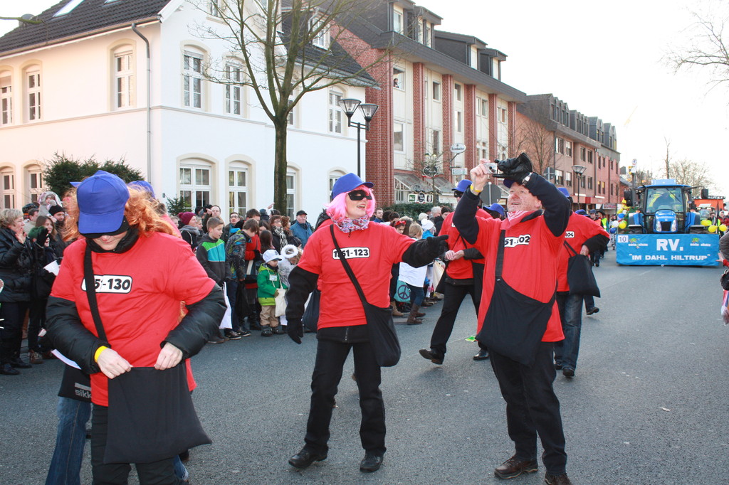 Auf der Generalversammlung vom 21.11.2010 wurde beschlossen die Einladung der KGH (Karneval Gesellschaft Hiltrup) anzunehmen und auch am 2. Umzug in Hiltrup teilzunehmen. Erstes Treffen nach der Generalversammlung im Vereinslokal Hubertusschänke (Hubi). Es wurde viel diskutiert und jede Menge Vorschläge gemacht. Dann stand das Motto fest.
