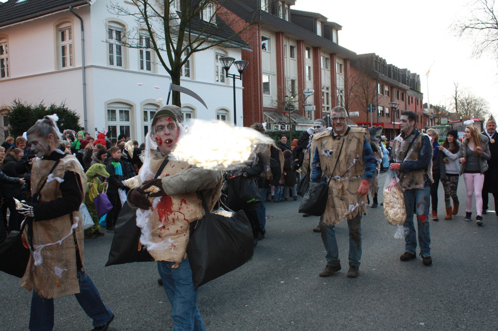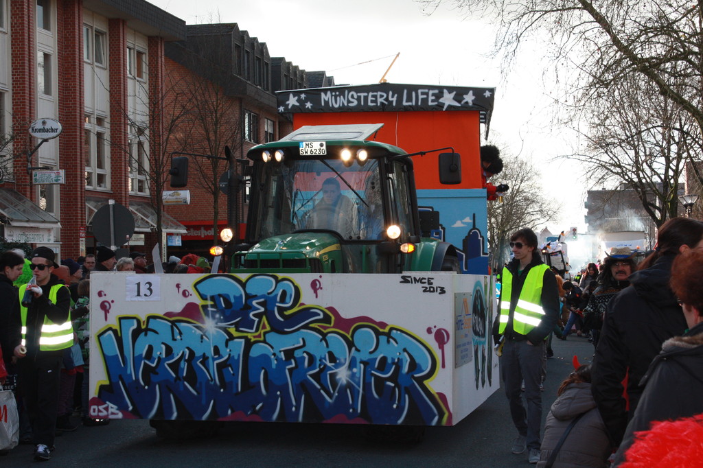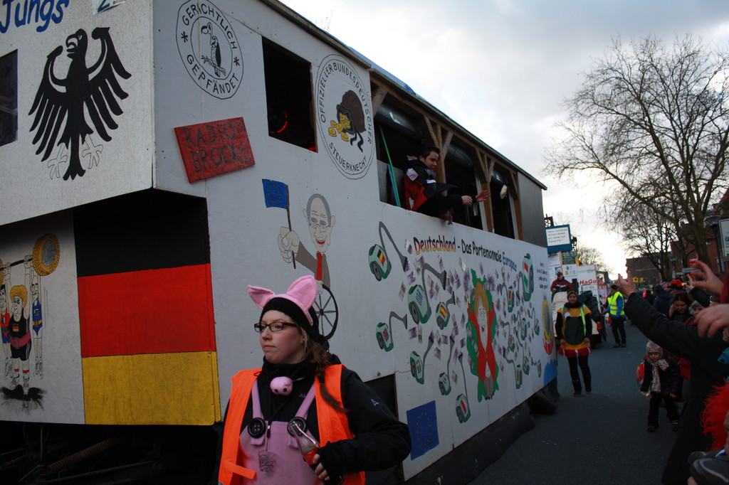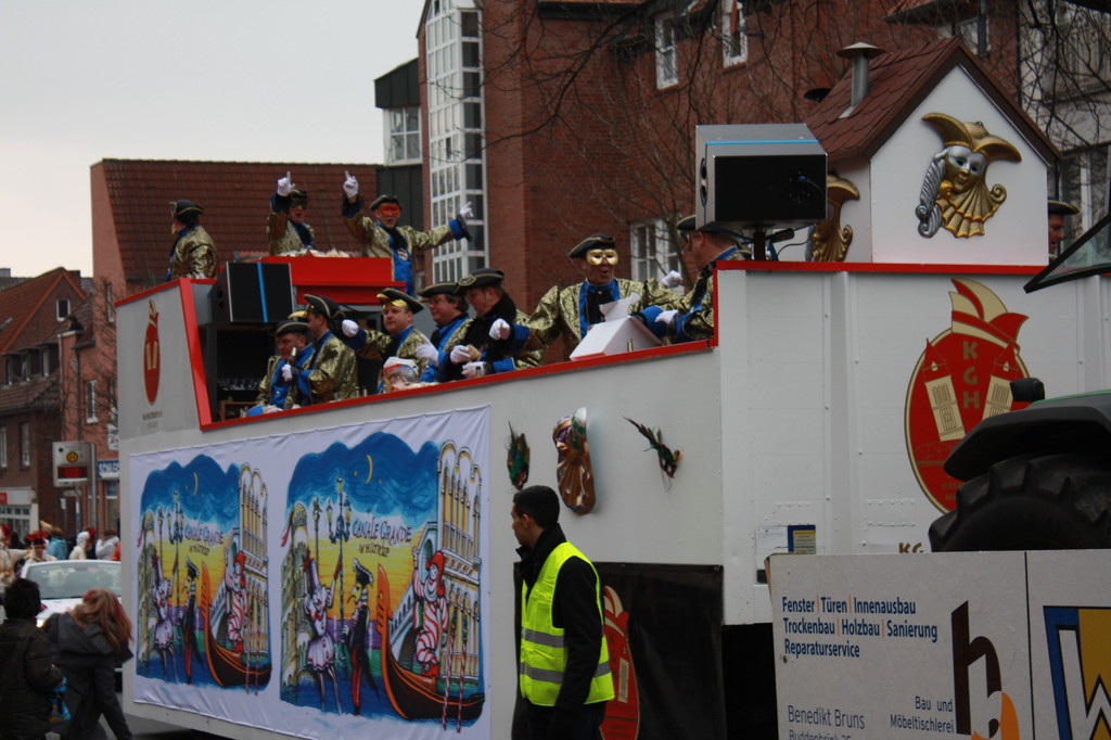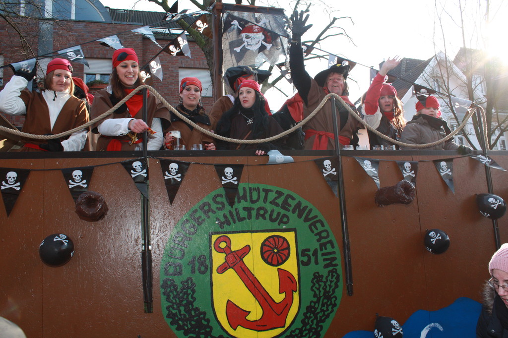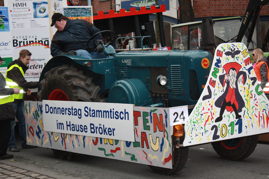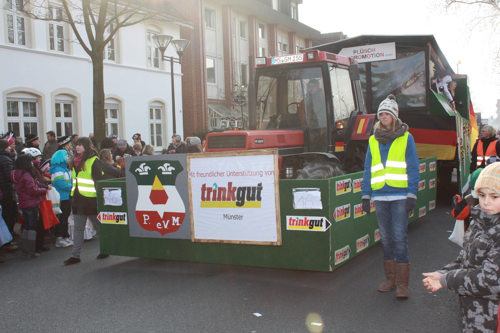 Auf der Generalversammlung vom 21.11.2010 wurde beschlossen die Einladung der KGH (Karneval Gesellschaft Hiltrup) anzunehmen und auch am 2. Umzug in Hiltrup teilzunehmen. Erstes Treffen nach der Generalversammlung im Vereinslokal Hubertusschänke (Hubi). Es wurde viel diskutiert und jede Menge Vorschläge gemacht. Dann stand das Motto fest.